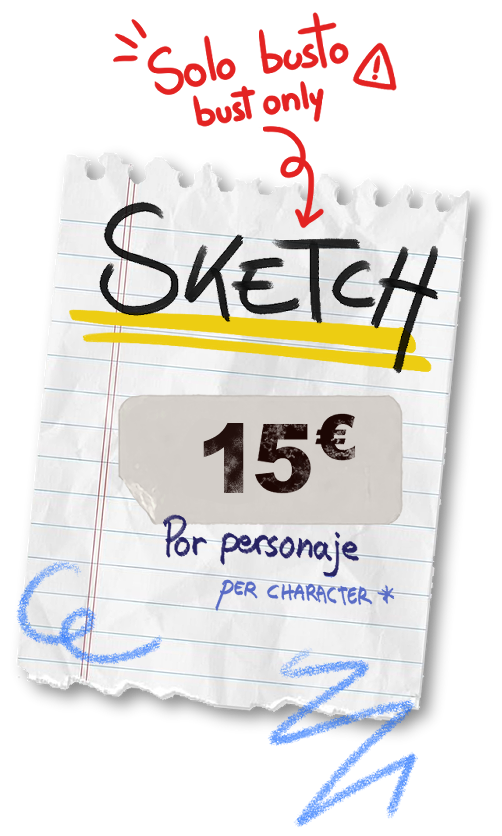 Pero también puedes darme libertad artística si lo deseas.•Los pagos se hacen por adelantado en Paypal, No empezaré a dibujar hasta que esté 100% pagado.•Permito 3 correciones por actualización que haga de la ilustación, querer una correción en un estado avanzado tendrá un coste de mínimo de 10 euros.•Habrá un extra adicional por armas, armaduras complicadas (armas simples entran dentro del precio)